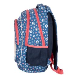 Plecak posiada boczne kieszenie na bidon lub butelkę z wodą, co zachęca dziecko do regularnego nawadniania się. Dodatkowe przegródki pozwalają na uporządkowanie długopisów, kredek i innych drobiazgów. Wygodny uchwyt na górze ułatwia zawieszenie plecaka w szkole lub przenoszenie go w ręku.