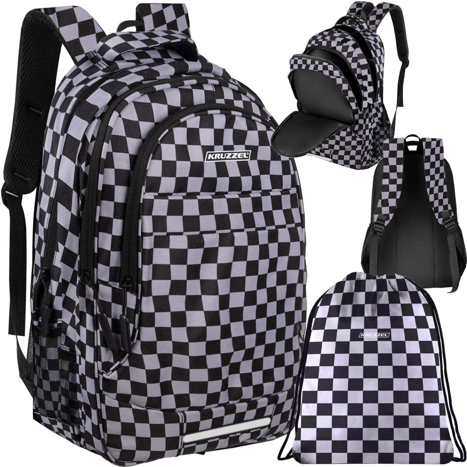 W zestawie znajduje się również praktyczny worek na obuwie zmienne lub strój na WF, wykonany z wysokiej jakości włókna poliestrowego. Materiał ten jest odporny na przetarcia i uszkodzenia, a także łatwy do utrzymania w czystości. Worek posiada podwójne, mocne sznurki, które można łatwo ściągnąć u góry, co zapewnia szybkie i wygodne zamykanie. Dzięki specjalnej konstrukcji, worek można nosić również jak plecak, co jest wygodnym rozwiązaniem na przykład w drodze na zajęcia sportowe. To wszechstronne akcesorium, które doskonale uzupełnia funkcjonalność całego zestawu. Worek jest utrzymanu w stylu plecaka i posiada kratkę taką samą jak na plecaku.