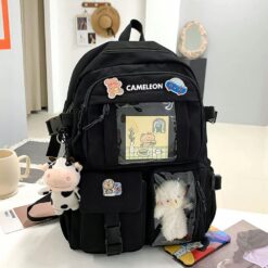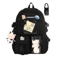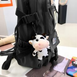 - Gratisy – razem z plecakiem otrzymujesz 2 sztuki breloków (krówka i miś), szyfrowany zamek zabezpieczający, 3 sztuki przypinek oraz uroczy print