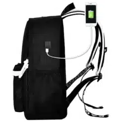 Plecak posiada wbudowany port USB oraz wejście słuchawkowe. Jeżeli posiadasz np. power bank, wystarczy, że włożysz go do plecaka i podłączysz, a już możesz ładować Swój telefon bezpośrednio gniazda USB. Na takiej samej zasadzie możesz korzystać ze słuchawek. Wystarczy włączyć muzykę w telefonie i podłączyć go do plecaka, a słuchawki do gniazdka Jack.