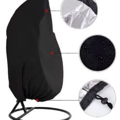 Zadbaj o jego bezpieczeństwo i trwałość dzięki solidnemu, wodoodpornemu pokrowcowi, który zapewnia kompleksową ochronę przed niekorzystnymi warunkami atmosferycznymi oraz zabrudzeniami. Produkt ten skutecznie chroni mebel przed deszczem i wilgocią dzięki specjalnie dobranemu materiałowi, który jest w pełni wodoodporny. Pokrowiec zabezpiecza także kokon przed kurzem, pyłem, liśćmi i ptasimi odchodami. Dzięki temu fotel pozostaje czysty i gotowy do użytku, a Ty oszczędzasz czas i wysiłek związany z jego czyszczeniem. Gdy sezon się kończy, a kokon trafia do garażu, piwnicy lub schowka, pokrowiec skutecznie chroni go przed kurzem, zarysowaniami i przypadkowymi uszkodzeniami podczas przechowywania lub transportu. Materiał, z którego wykonana jest osłona, nie tylko zabezpiecza przed wilgocią, ale także przed promieniami UV. Dzięki temu zapobiega blaknięciu tkanin i osłabieniu konstrukcji spowodowanemu długotrwałym działaniem słońca.
