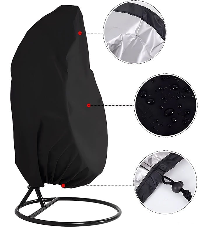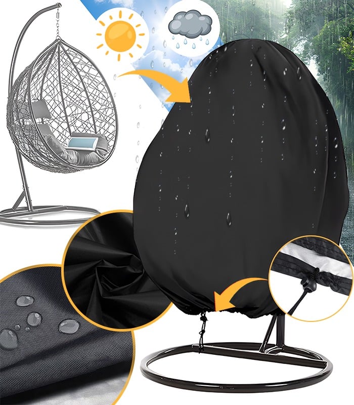 Zadbaj o jego bezpieczeństwo i trwałość dzięki solidnemu, wodoodpornemu pokrowcowi, który zapewnia kompleksową ochronę przed niekorzystnymi warunkami atmosferycznymi oraz zabrudzeniami. Produkt ten skutecznie chroni mebel przed deszczem i wilgocią dzięki specjalnie dobranemu materiałowi, który jest w pełni wodoodporny. Pokrowiec zabezpiecza także kokon przed kurzem, pyłem, liśćmi i ptasimi odchodami. Dzięki temu fotel pozostaje czysty i gotowy do użytku, a Ty oszczędzasz czas i wysiłek związany z jego czyszczeniem. Gdy sezon się kończy, a kokon trafia do garażu, piwnicy lub schowka, pokrowiec skutecznie chroni go przed kurzem, zarysowaniami i przypadkowymi uszkodzeniami podczas przechowywania lub transportu. Materiał, z którego wykonana jest osłona, nie tylko zabezpiecza przed wilgocią, ale także przed promieniami UV. Dzięki temu zapobiega blaknięciu tkanin i osłabieniu konstrukcji spowodowanemu długotrwałym działaniem słońca.