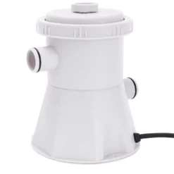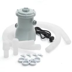 Jest to najważniejszy element wyposażenia basenu. Pozwala na utrzymanie czystej wody. Wszystkie pływające nieczystości są wciągane przez pompę i osadzają się na filtrze. Sam filtr powinien być regularnie czyszczony i wymieniany. Dodatkowo do zestawu dodajemy węże zaciski oraz sitka na nieczystości, które pozwolą utrzymać odpowiednią czystość wody w basenie. Konstrukcja pompy umożliwia szybką wymianę filtra. Wystarczy odkręcić górne wieczko i wyjąć filtr. Po wymienieniu filtra wystarczy zakręcić wieko i pompa jest z powrotem gotowa do działania.