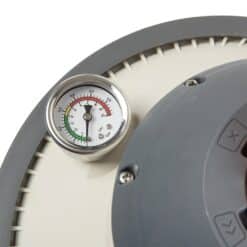 Wbudowany dokładny i wyraźny manometr ułatwia odczytanie parametrów i kontrolę ciśnienia w pompie. Element ten odgrywa kluczową rolę w prawidłowym działaniu filtra, służy do pomiaru ciśnienia utrzymującego wodę w ciągłym ruchu w trakcie filtracji. Nieprawidłowe ciśnienie będzie miało negatywny wpływ na jakość wody w basenie. Zbyt wysokie ciśnienie może powodować wyciek piasku do wody basenowej, zbyt niskie z kolei powoduje, że woda staje się mętna, dzieje się tak, gdy piasek jest nadmiernie zanieczyszczony, wówczas należy go przepłukać lub gdy zapchane filtry spowodowały zatory uniemożliwiając swobodny przepływ wody. W takim przypadku zwykle pomaga sprawdzenie i oczyszczenie filtrów, węży wlotowych i wylotowych oraz siatki wyłapującej większe zanieczyszczenia.