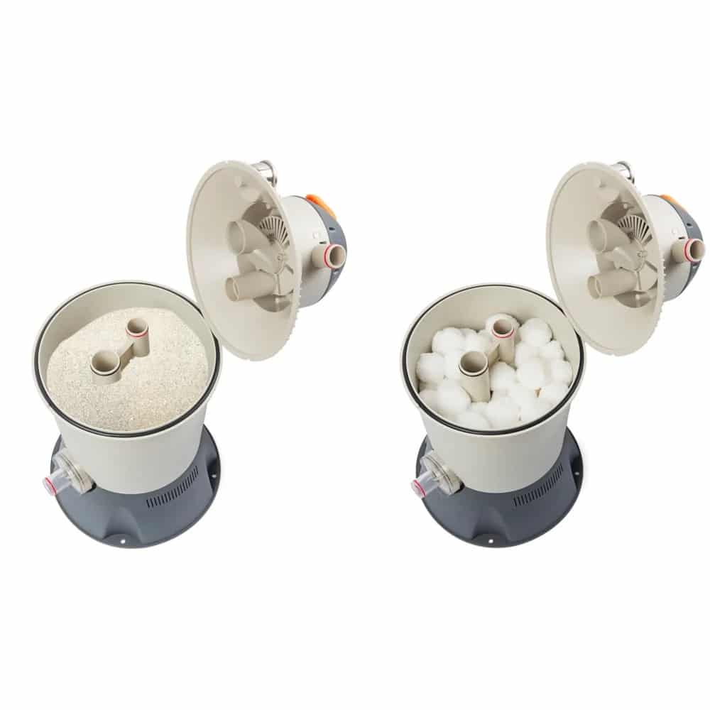 Pompa odfiltrowuje zarówno liście czy włosy, jak i te najmniejsze zanieczyszczenia, typu pyłki, kurz lub drobne owady. Świetnie w roli wsadu sprawdzają się również poliestrowe kulki filtrujące, mięciutkie, puszyste i bardzo chłonne. Dodatkowo znacznie mniej niż piasek obciążają pompę, gdyż nie wytwarzają aż tak dużego oporu wody.