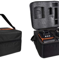 Komplet znajduje się w torbie z regulowanym paskiem. Posiada również piankową wytłoczkę, która zabezpiecza poziomicę i jej akcesoria w czasie transportowania czy przechowywania.