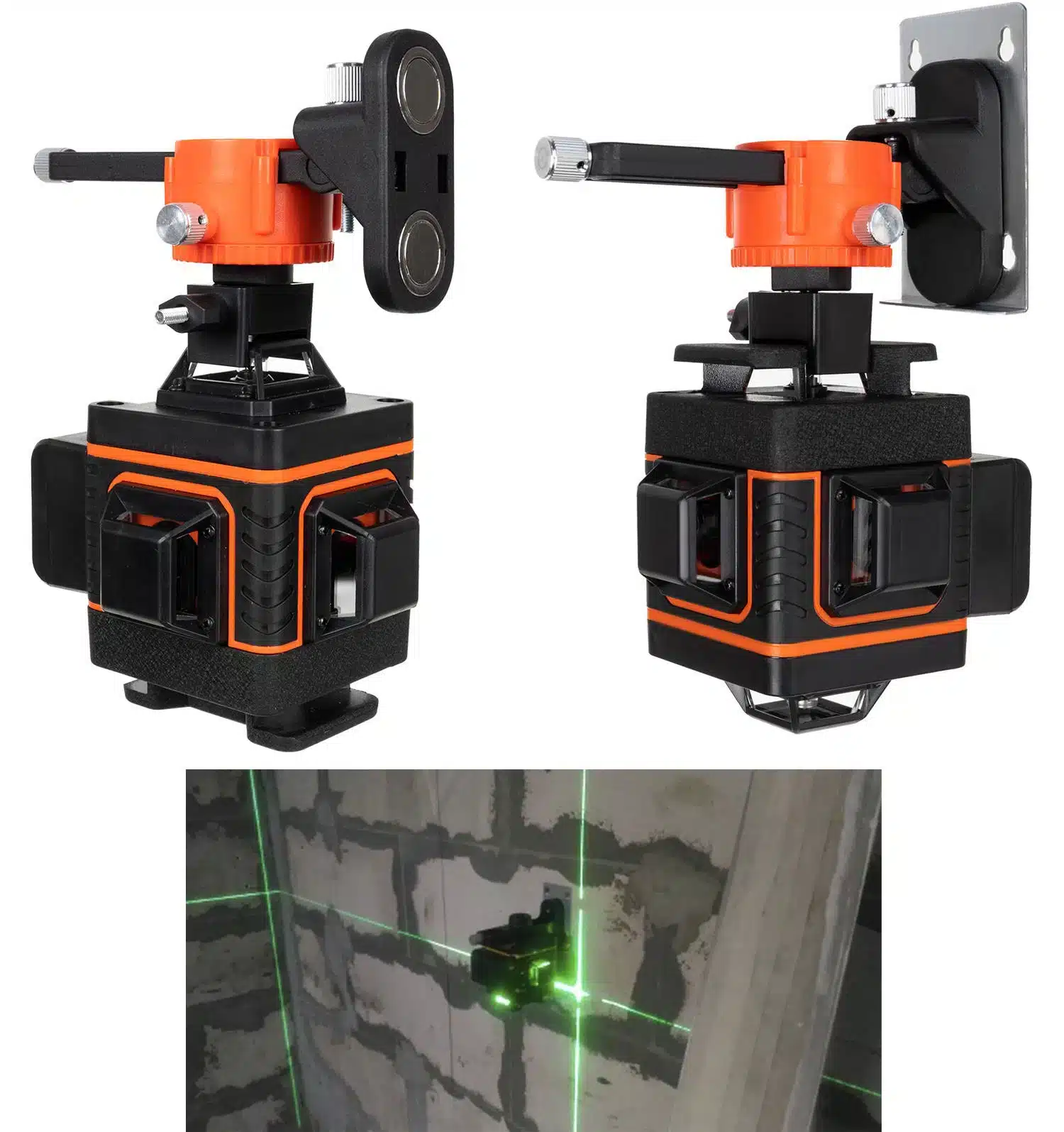Ścienny uchwyt montażowy – do zestawu dołączony został uchwyt ścienny. Wystarczy przykręcić metalową blaszkę do wybranej ściany, a następnie użyć regulowanego uchwytu wyposażonego w dwa mocne magnesy, które zapewniają solidne połączenie z wcześniej przykręconą blachą. Umożliwia to bezproblemowe zamocowanie poziomicy na dowolnej wysokości ściany.