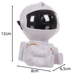 - STEROWANIE – Projektorem Gwiazd / Astronauta Na Pilota Projektor wyposażony jest w pilota oraz przyciski na ciele astronauty, które umożliwiają włączanie i wyłączanie, a także zmianę ustawień: zmiana kolorów; włączanie i wyłączania mgławicy czy gwiazd; ustawienia czasowe (automatyczne rozjaśnianie i wyciemnianie gwiazd w określonym czasie).