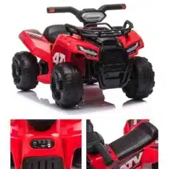 Quad to idealny prezent dla małych fanów jazdy terenowej. Błoto, piaski, wzniesienia i wiele innych ciekawych form podłoża to coś o czym marzą mali odkrywcy świata. Pojazd nie nadaje się do jazdy po trudnym terenie, ale z pewnością duża wyobraźnia dziecka jest w stanie stworzyć sobie taką przestrzeń. Dla bezpieczeństwa zaleca się używać zabawkę na równym podłożu.