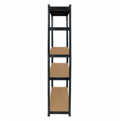 Czarny regał magazynowy o wymiarach 150x70x30 cm to praktyczne i solidne rozwiązanie do przechowywania narzędzi, zapasów czy akcesoriów w domu, warsztacie lub sklepie. Wykonany z trwałej stali malowanej proszkowo i płyt MDF, zapewnia stabilność oraz dużą nośność – aż 875 kg łącznie (175 kg na każdą półkę).