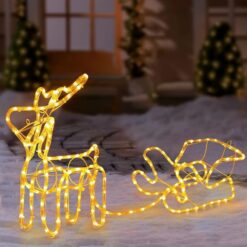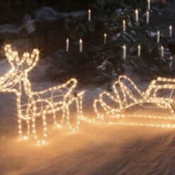 Renifer z saniami LED, to świetna dekoracja naszego otoczenia, zarówno wewnątrz jak i na zewnątrz. Wprowadzi cudowny świąteczny klimat na ogrodzie, tarasie czy balkonie ale również w witrynie sklepowej czy w naszym salonie. W każdym z tych miejsc, będzie prezentował się idealnie i doda niepowtarzalnego klimatu. Renifer ma 140cm długości więc będzie zauważalny z daleka i nikogo nie pozostawi obojętnym!
