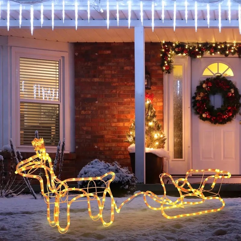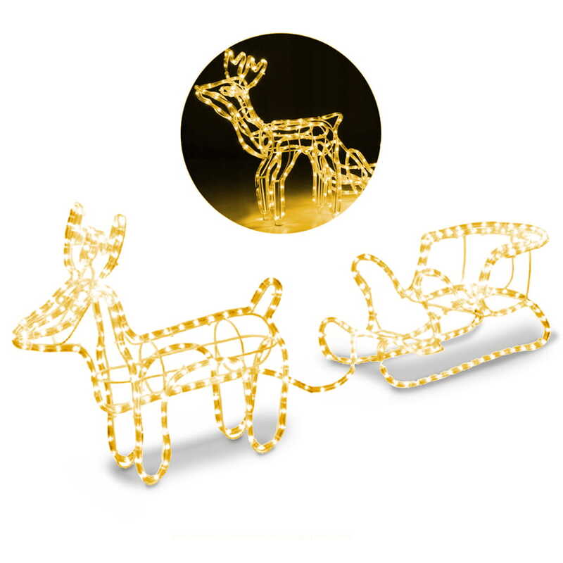 Renifer z saniami LED, to świetna dekoracja naszego otoczenia, zarówno wewnątrz jak i na zewnątrz. Wprowadzi cudowny świąteczny klimat na ogrodzie, tarasie czy balkonie ale również w witrynie sklepowej czy w naszym salonie. W każdym z tych miejsc, będzie prezentował się idealnie i doda niepowtarzalnego klimatu. Renifer ma 140cm długości więc będzie zauważalny z daleka i nikogo nie pozostawi obojętnym!