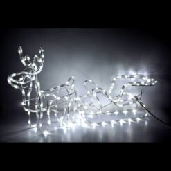 Renifer z saniami LED, to świetna dekoracja naszego otoczenia, zarówno wewnątrz jak i na zewnątrz. Wprowadzi cudowny świąteczny klimat na ogrodzie, tarasie czy balkonie ale również w witrynie sklepowej czy w naszym salonie. W każdym z tych miejsc, będzie prezentował się idealnie i doda niepowtarzalnego klimatu. Renifer ma 140cm długości więc będzie zauważalny z daleka i nikogo nie pozostawi obojętnym!
