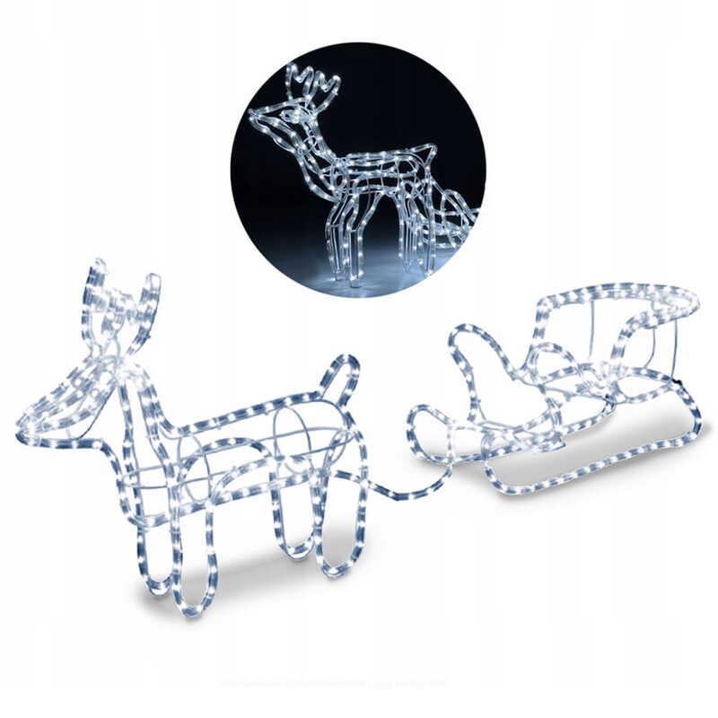 Renifer z saniami LED, to świetna dekoracja naszego otoczenia, zarówno wewnątrz jak i na zewnątrz. Wprowadzi cudowny świąteczny klimat na ogrodzie, tarasie czy balkonie ale również w witrynie sklepowej czy w naszym salonie. W każdym z tych miejsc, będzie prezentował się idealnie i doda niepowtarzalnego klimatu. Renifer ma 140cm długości więc będzie zauważalny z daleka i nikogo nie pozostawi obojętnym!