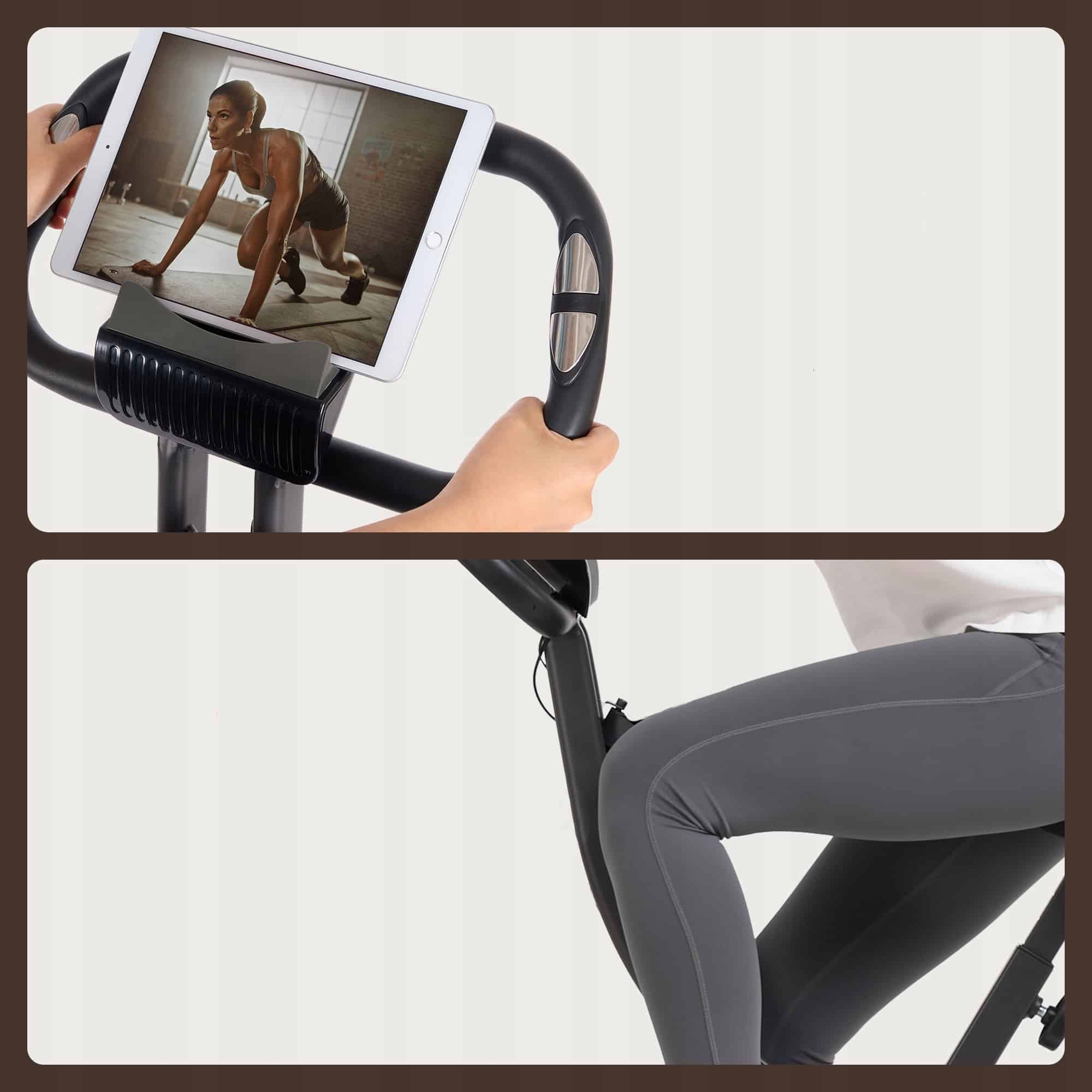Ergonomiczne uchwyty zapewniają pewny i wygodny chwyt, a antypoślizgowe pedały zwiększają bezpieczeństwo podczas ćwiczeń. Dzięki składanej konstrukcji sprzęt łatwo przechować w szafie lub pod łóżkiem, co czyni go idealnym wyborem do mieszkań i niewielkich przestrzeni.