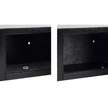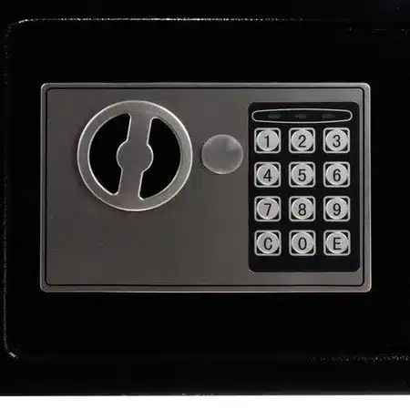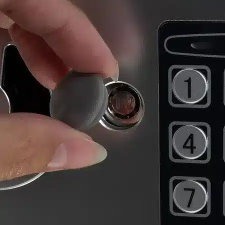 - Podwójne zabezpieczenie – Elektroniczne szyfrowanie oraz awaryjne otwieranie poprzez tradycyjny zamek na klucz gwarantują wysoką ochronę przed dostępem niepowołanych osób. Zamek można wielokrotnie programować, 3-8 cyfrowym kodem dostępu. Po trzykrotnie błędnym wpisaniu kodu następuje blokada 30 sekundowa, jest ona sygnalizowana w sposób świetlny oraz dźwiękowy. Jeśli baterie będą słabe sejf również zasygnalizuje to światłem LED