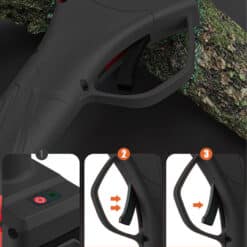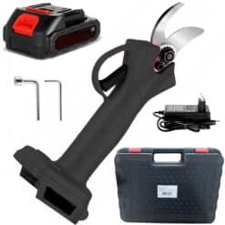Nożyce – sekator akumulatorowy jest bezpieczny w użyciu dzięki zastosowaniu akumulatorów litowo-jonowych, które eliminują ryzyko porażenia prądem, charakterystyczne dla narzędzi z przewodem.