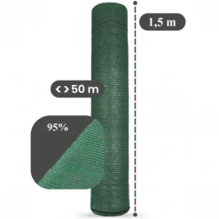 Siatka cieniująca 1,5×50 m 95% UV zielony| Osłona na balkon, taras i ogrodzenie | Mata maskująca