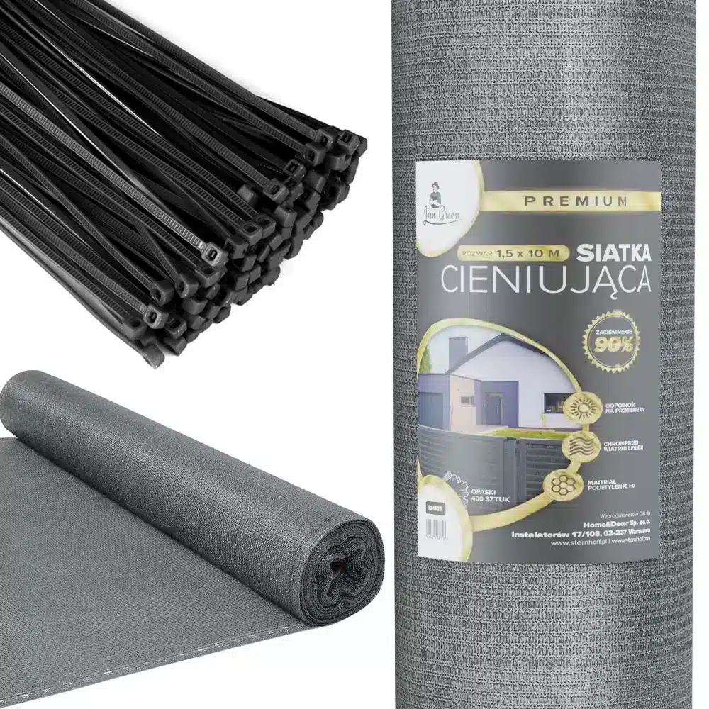 Siatka Cieniująca 90% Maskująca Na Ogrodzenie 1,5x10m + Opaski