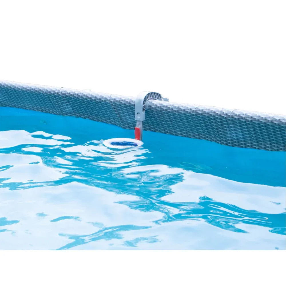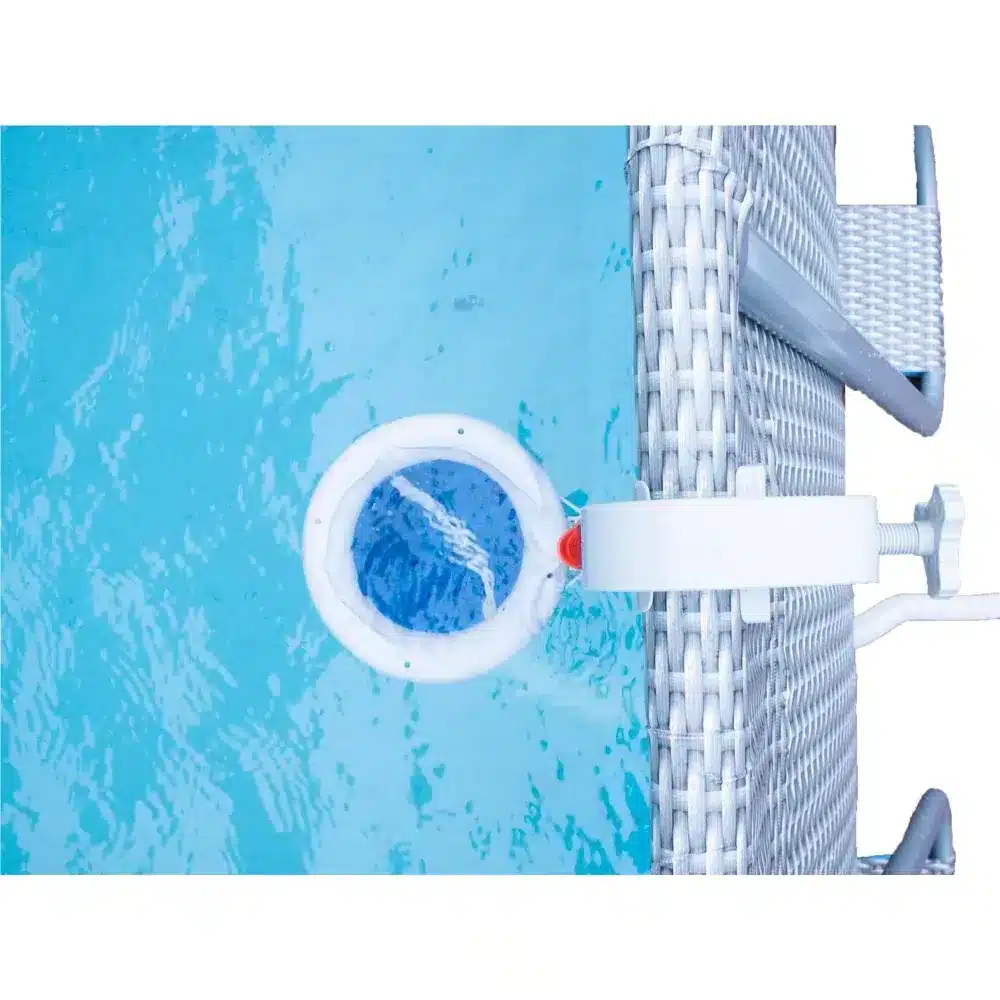 Montaż jest łatwy i nie wymaga dodatkowych narzędzi. Przy skimemerze znajduje się wspornik montażowy, który należy zawiesić na bocznej części basenu. Następnie należy podłączyć do pompy filtrującej za pomocą dołączonego do zestawu węża i adaptera z dnem skimmera. Nic bardziej prostego do uzyskania czystej wody w basenie! Działa automatycznie, dlatego nie musimy monitorować czy w basenie pływają zanieczyszczenia. Jest on lekki oraz poręczny, idealny do przydomowych basenów ogrodowych.