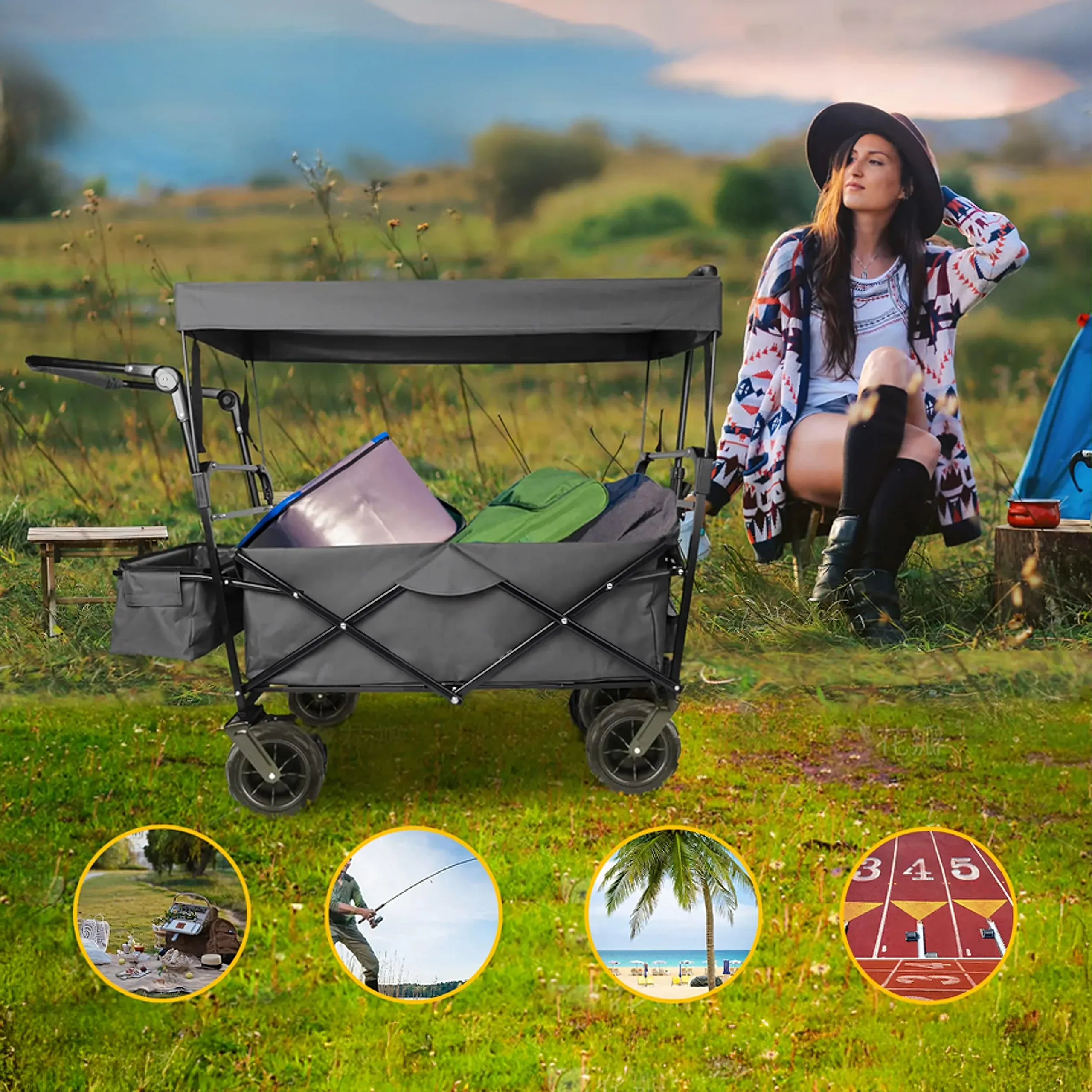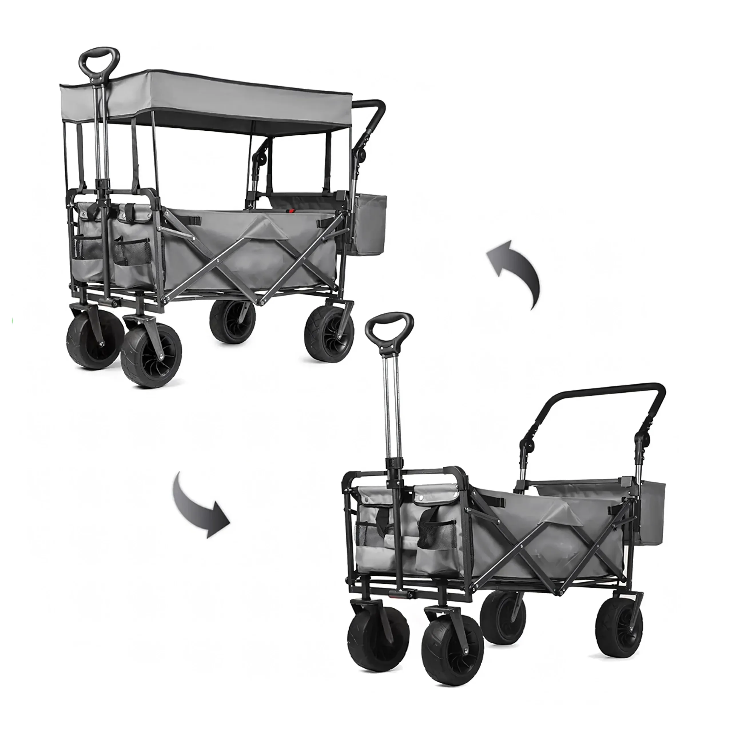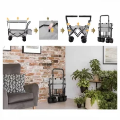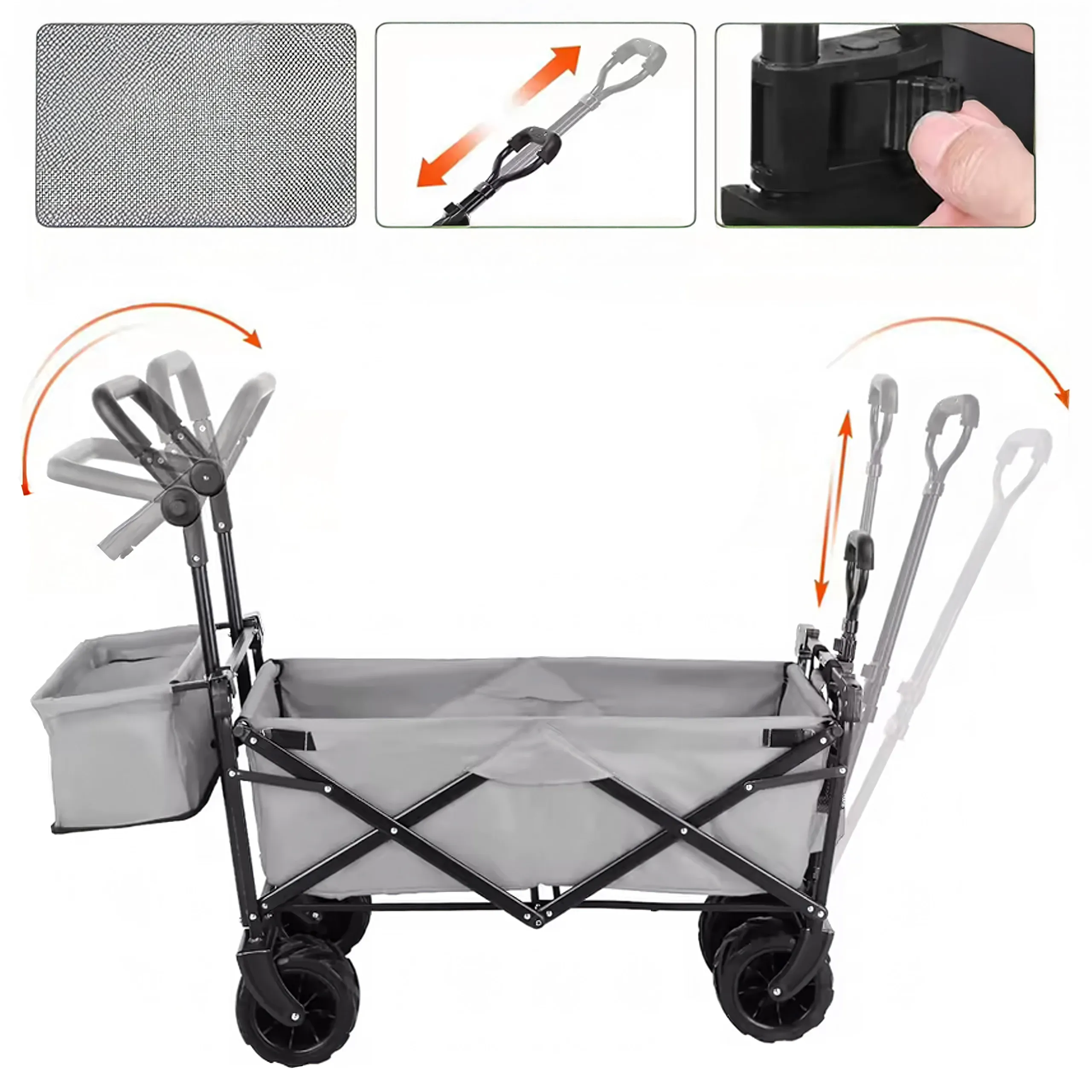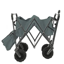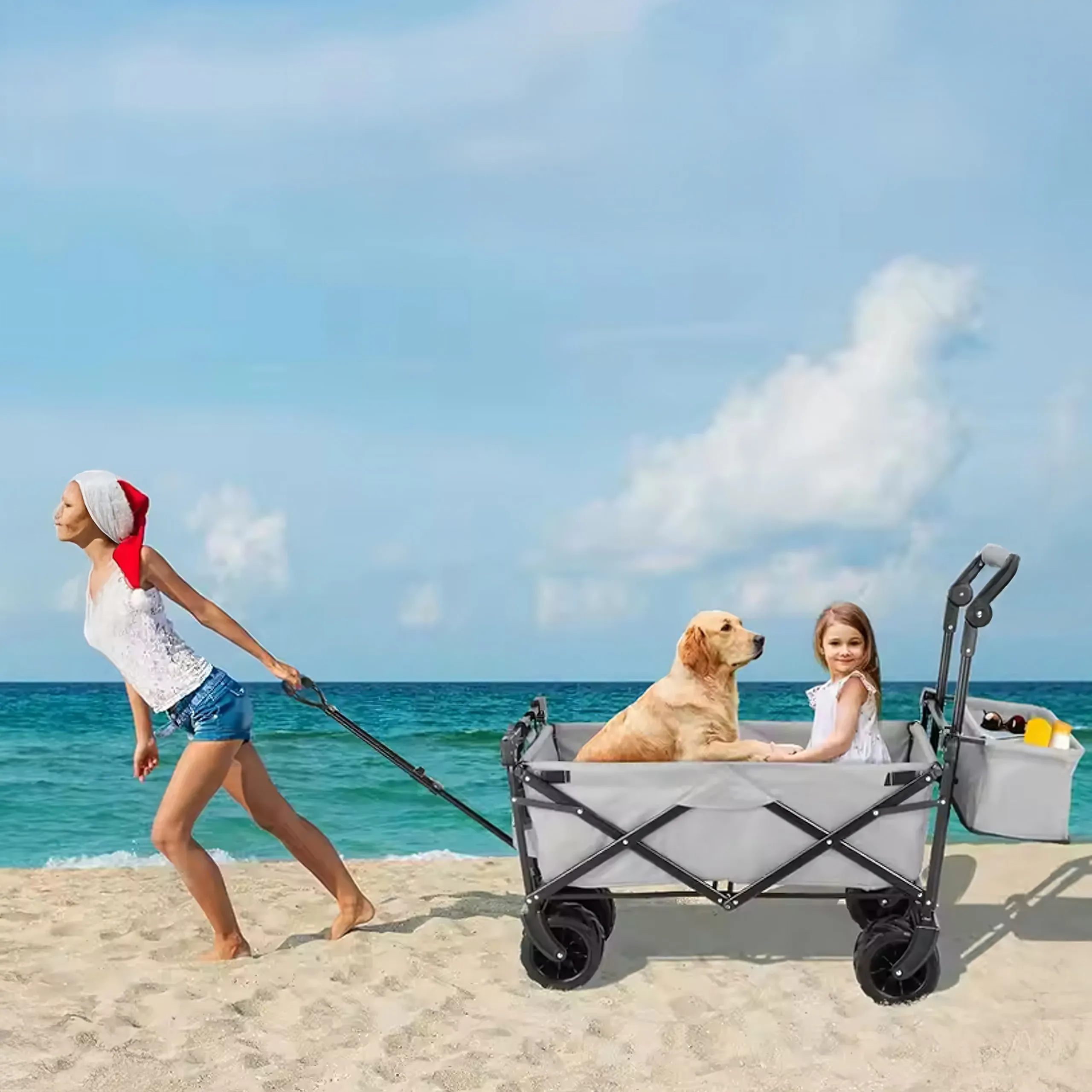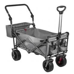 - Koła XL o średnicy 19×7 cm – pokonują bez trudu piasek, żwir, trawę i inne nierówności – idealne na plażę, camping czy działkę.