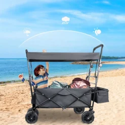 - Na plażę – przewieziesz ręczniki, parasol, zabawki, napoje i przekąski bez noszenia ciężarów.