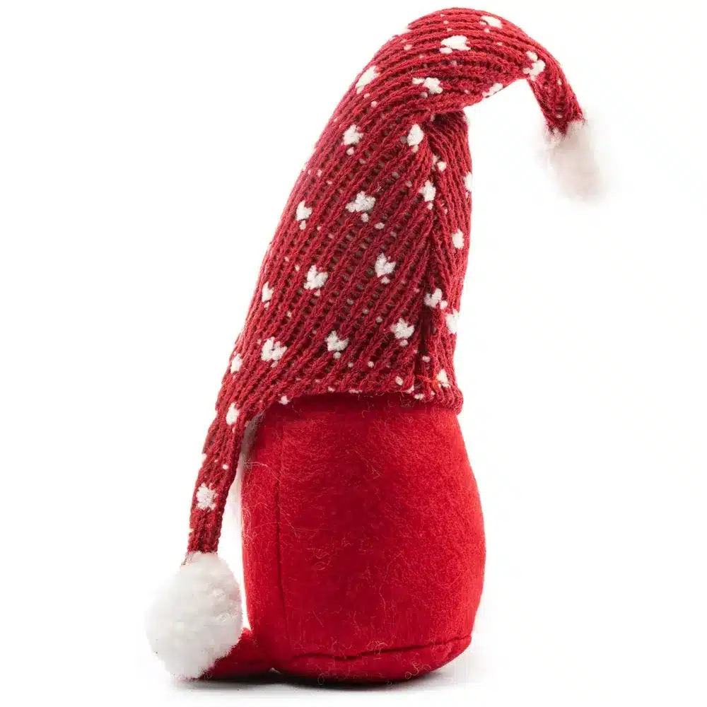 Ma wzmacniany, korpus, dzięki czemu można go wygodnie położyć na blacie, czy parapecie tworząc niezwykłą ozdobę świąteczną. Dzięki zrównoważonemu obciążeniu gnom z czapeczką nie będzie nam się wywracał.