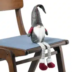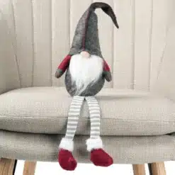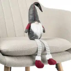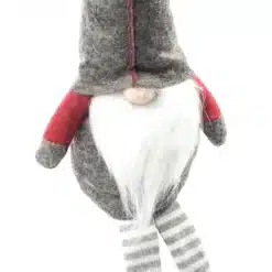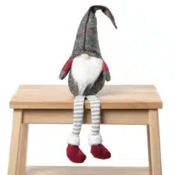 Ma wzmacniany, korpus, dzięki czemu można go wygodnie położyć na blacie, czy parapecie tworząc niezwykłą ozdobę świąteczną. Dzięki zrównoważonemu obciążeniu gnom z czapeczką nie będzie nam się wywracał. Zwisające nóżki krasnala są dodatkowym atutem, co czyni go bardziej atrakcyjnym wizualnie.