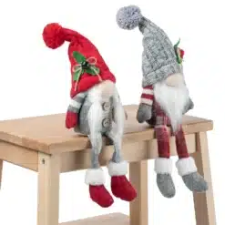 Mają wzmacniane, korpusy, dzięki czemu można je wygodnie położyć na blacie, czy parapecie tworząc niezwykłą ozdobę świąteczną. Dzięki zrównoważonemu obciążeniu gnom z czapeczką nie będzie nam się wywracał. Zwisające nóżki krasnali są dodatkowym atutem, co czyni je bardziej atrakcyjnymi wizualnie.