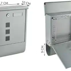 Stal ocynkowana – skrzynka wykonana ze stali ocynkowanej, dzięki czemu nie będzie rdzewieć i posłuży na wiele sezonów. W zestawie dołączone są kołki montażowe oraz gumowe podkładki/dystanse, za pomocą których wystarczy przykręcić skrzynkę przez znajdujące się w tylnej ściance otwory.