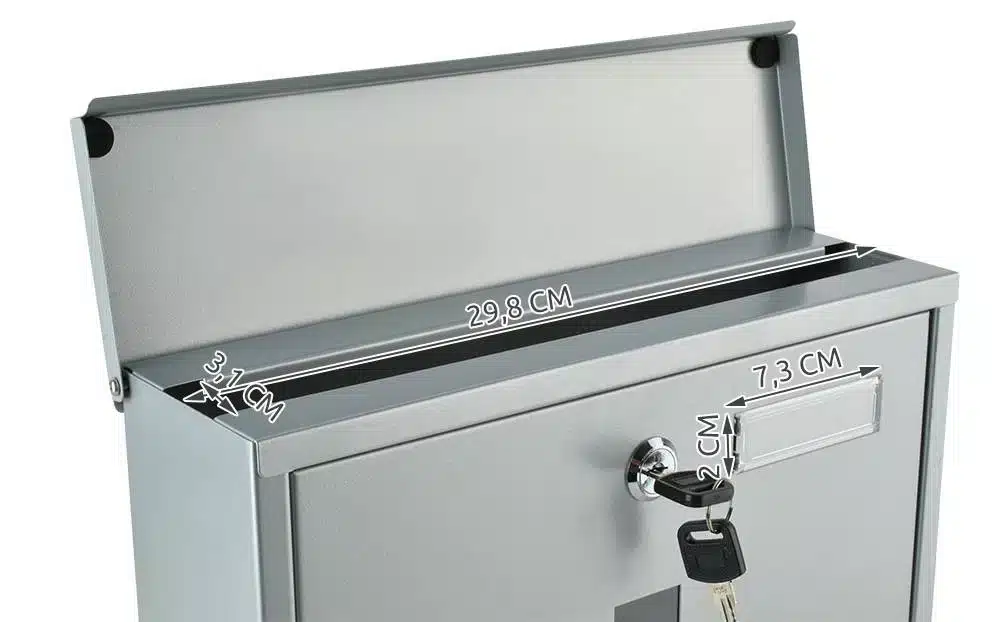 Zasłonięty wrzut na listy / format A4 – skrzynka posiada wrzut który jest zabezpieczony specjalną nakładką chroniącą korespondencję przed warunkami atmosferycznymi. Do skrzynki z powodzeniem mieszczą się nawet listy o formacie A4.