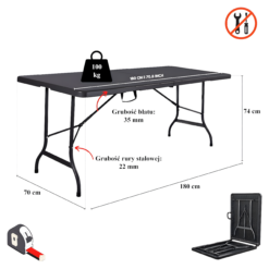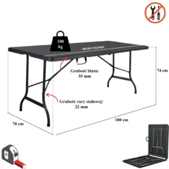 Stół Cateringowy Ogrodowy Bankietowy Walizka Składany Duży 180x74x70cm