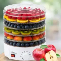 Łatwo wymienialne tacki umożliwiają swobodne przekładanie ich podczas pracy urządzenia. Jeśli masz mniej produktów do wysuszenia, nie musisz używać wszystkich 5 sit, może być ich mniej. Dzięki takiemu procesowi suszenia, przez cały rok można delektować się owocami, warzywami czy grzybami bez dodawania jakichkolwiek sztucznych konserwantów.