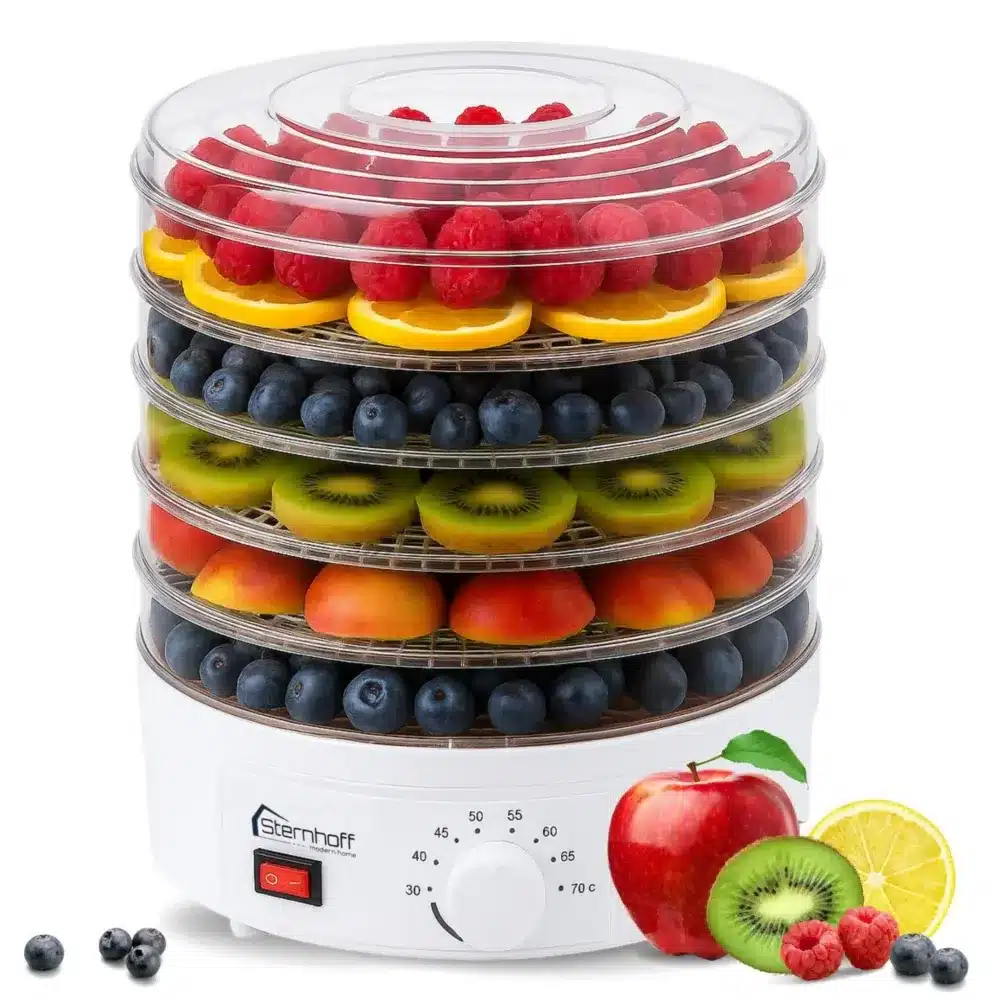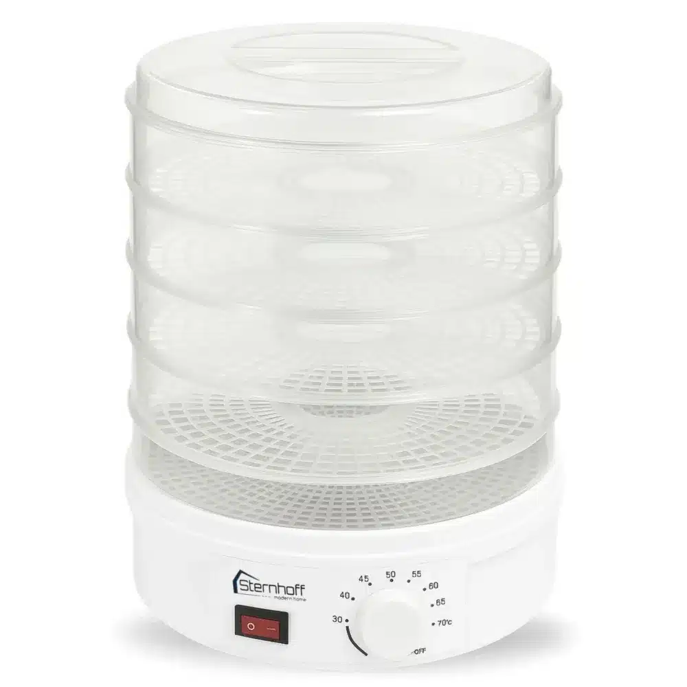 Łatwo wymienialne tacki umożliwiają swobodne przekładanie ich podczas pracy urządzenia. Jeśli masz mniej produktów do wysuszenia, nie musisz używać wszystkich 5 sit, może być ich mniej. Dzięki takiemu procesowi suszenia, przez cały rok można delektować się owocami, warzywami czy grzybami bez dodawania jakichkolwiek sztucznych konserwantów.