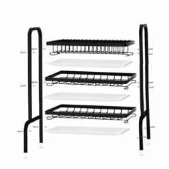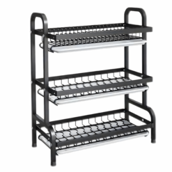 Suszarka do naczyń trzypoziomowa czarna – Duży ociekacz ze stali nierdzewnej