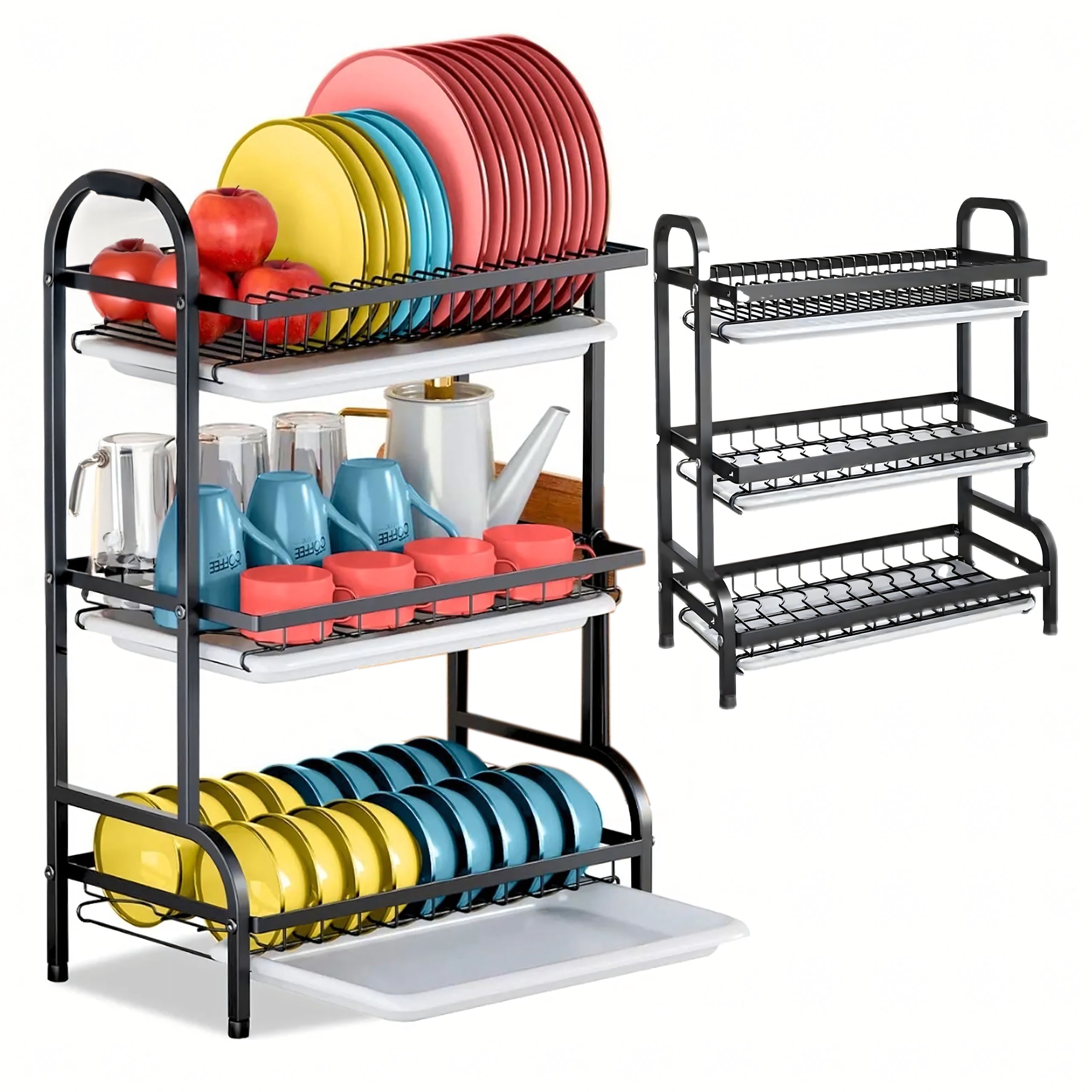 Suszarka do naczyń trzypoziomowa czarna – Duży ociekacz ze stali nierdzewnej