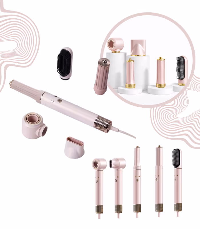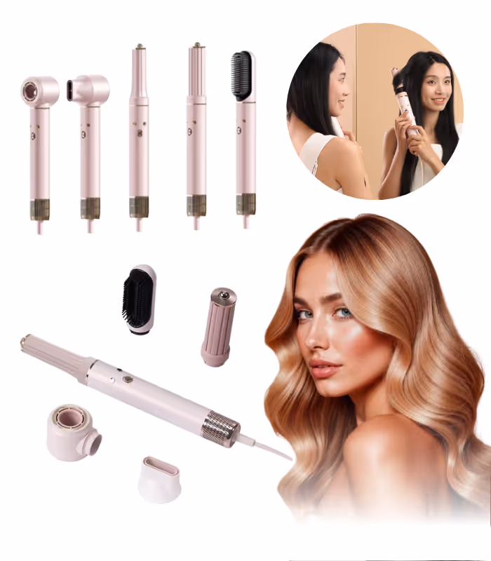 Różowa suszarka do włosów 5w1 z jonizacją – stylizacja, suszenie i loki w jednym urządzeniu