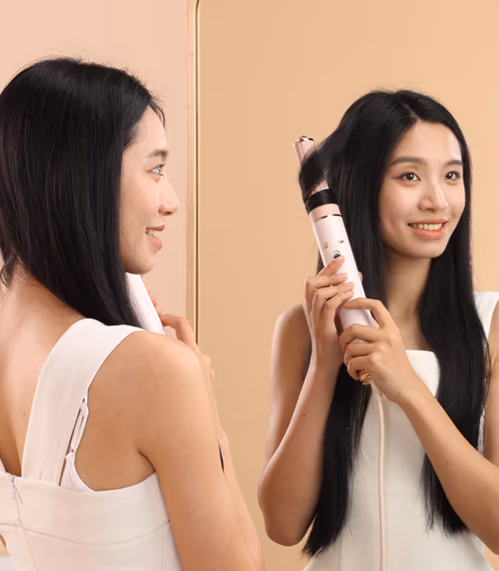 Świadoma pielęgnacja włosów w połączeniu ze sprzętem wysokiej klasy da Ci jedwabiście gładkie i pełne blasku włosy. Przejmij kontrolę nad urządzeniem i dostosuj poziom nawiewu oraz temperaturę do swoich preferencji. Po zakończonej stylizacji skorzystaj z opcji zimnego nawiewu, aby utrwalić i wygładzić fryzurę. Zmniejszy to także puszenie i elektryzowanie się włosów.