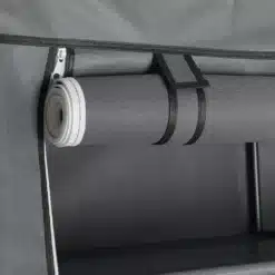 Ponadto pokrowiec szafy jest oddychający – poprzez stały dopływ świeżego powietrza chroni obuwie przed zawilgoceniem oraz nieprzyjemnym zapachem, który zwykle powoduje dyskomfort w trakcie zakładania butów wyciągniętych z szafy. Dzięki temu przechowywane obuwie zachowa odpowiednią świeżość, a przy tym zamknięte pod materiałem nie będzie widoczne.