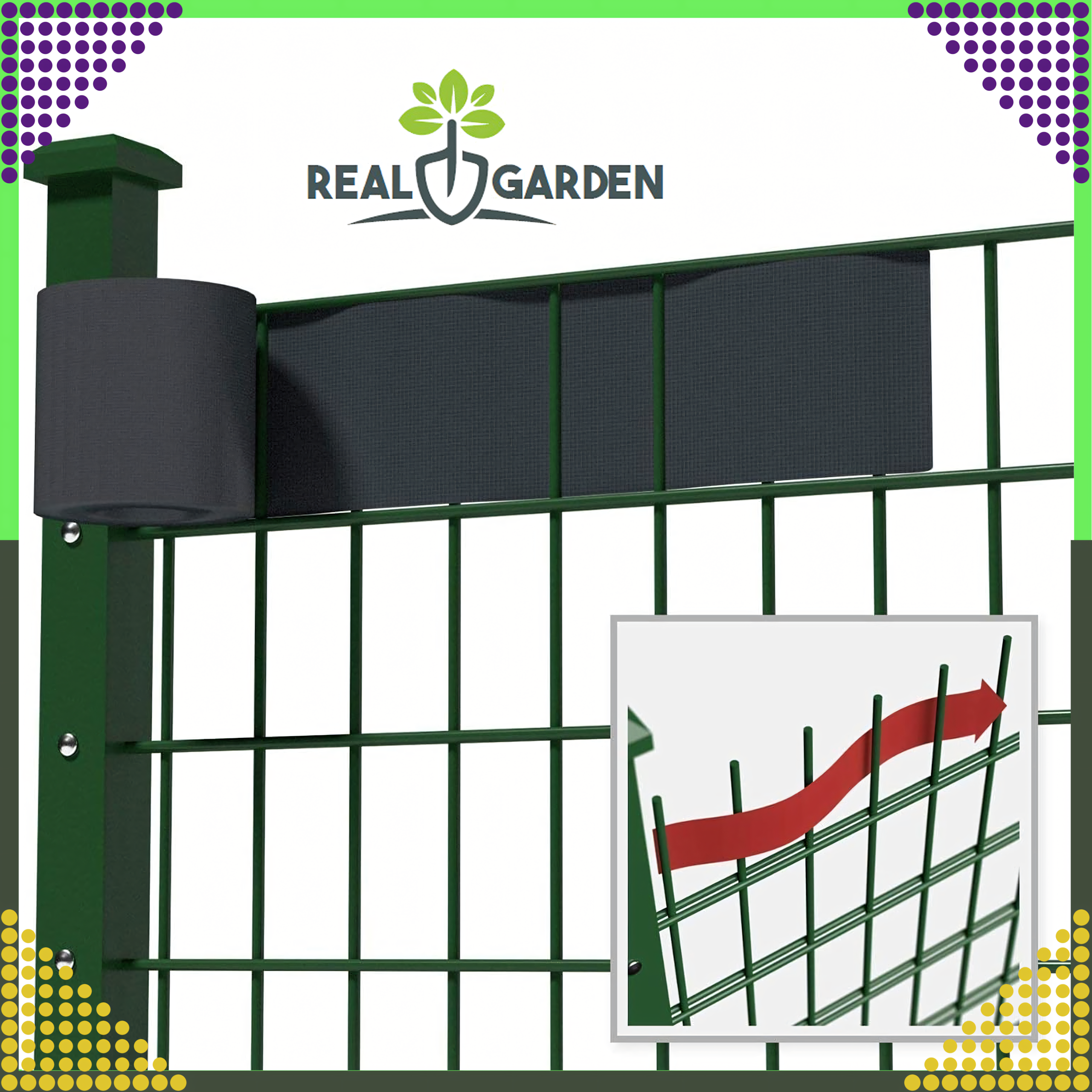 3. Jak montować taśmę na ogrodzeniu? Taśmę montuje się poprzez przeplatanie przez panele ogrodzeniowe i zabezpieczenie za pomocą specjalnych klipsów (dołączonych do zestawu).