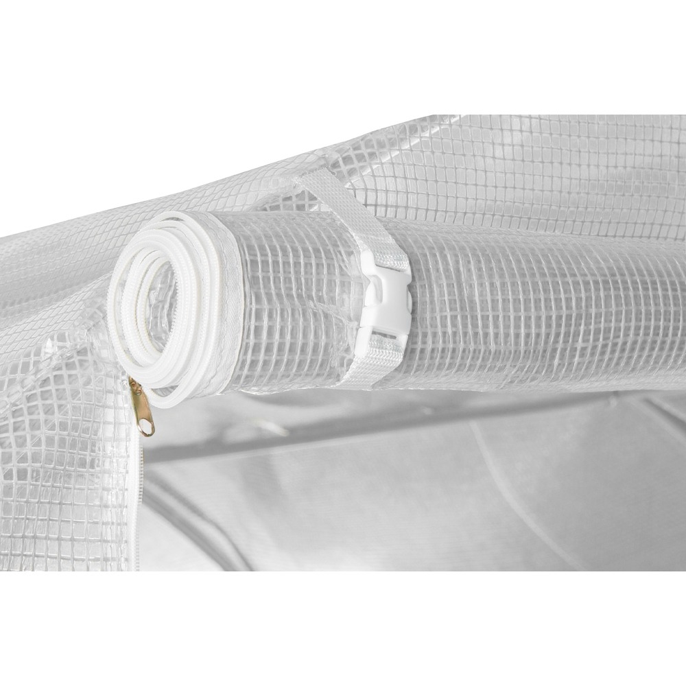 Tunel wyposażony jest w okna z moskitierą. Dodatkowo posiada one zapinaną roletę, która pozwoli na ich zamknięcie. Zrolowaną roletę zapina się poprzez paski z zapięciem. Rozłożoną roletę można przypiąć do tunelu za pomocą zamka błyskawicznego.