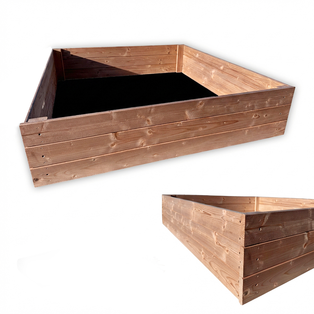 - Impregnacja – drewno zabezpieczone ekologicznym impregnatem wodnym wysokiej klasy, który chroni przed wilgocią, warunkami atmosferycznymi i wydłuża żywotność warzywniaka.