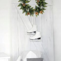 - Materiał: świerk PVC, naturalna szyszka, biały brokat