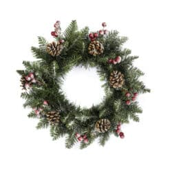 Wianek stroik świerk oszronione gałązki szyszka jarzębina 100% PVC