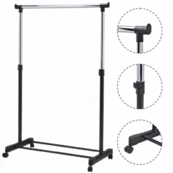 Lekki, a jednocześnie stabilny wieszak na ubrania z regulowaną wysokością. Doskonały do firmy, sklepu, biura oraz domu. Bardzo prosty w montażu. Wykonany z metalu – rury o przekroju 20mm. Poprzeczka chromowana 25 mm. Skręcany w systemie złącz. Wyposażony w regulację wysokości, która pozwala eksponować na nim dowolną odzież.