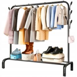 Dzięki długości 110 cm oraz wysokości aż 146 cm zyskujesz sporo miejsca na płaszcze, kurtki, sukienki czy garnitury. Wieszak udźwignie aż do 75 kg, więc bez problemu poradzi sobie z większym obciążeniem.