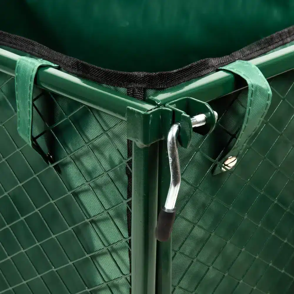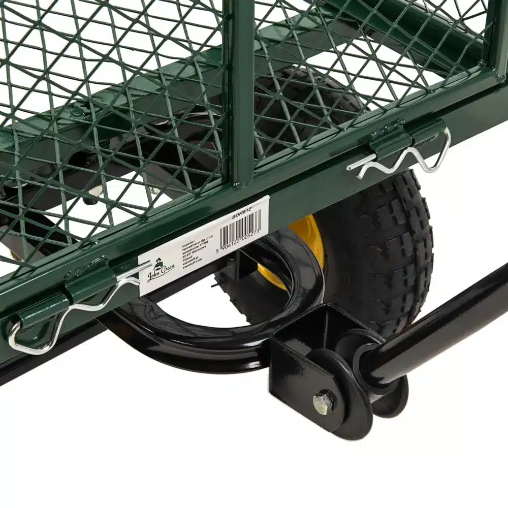 Przemyślane rozwiązanie jakim są opuszczane burty, sprawiają, że zarówno załadunek jak i rozładunek towaru staje się szybki i wygodny. Załadowanie oraz rozładowanie skrzyni ładunkowej jest ułatwione dzięki odpinanym metalowym burtom. Burty są mocowane za pomocą metalowych szpilek, które skutecznie zabezpieczają je przed przypadkowym wypięciem się. W przypadku przewozu dłuższych elementów wystających poza obrys skrzyni, dla ułatwienia transportu można całkowicie zdemontować dowolną burtę. Ta praktyczna funkcja daje elastyczność w użytkowaniu wózka, pozwalając dostosować go do konkretnych potrzeb transportowych. Idealny zarówno dla profesjonalistów, jak i miłośników ogrodnictwa, wózek ten to niezastąpione wsparcie podczas realizacji różnorodnych zadań w otoczeniu domowym czy ogrodzie.