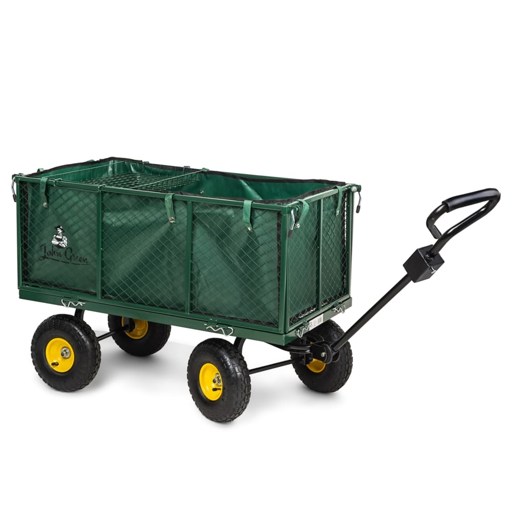 Wózek ogrodowy transporter, przyczepka z opuszczanymi burtami + wkład do przewozu sypkich rzeczy