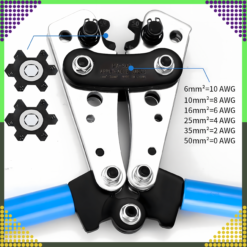 Wbudowane obrotowe matryce zaciskowe są sześciokątne. 6-10-16-25-35-50 mm². Zmiana wielkości matrycy następuje przy użyciu samych rąk