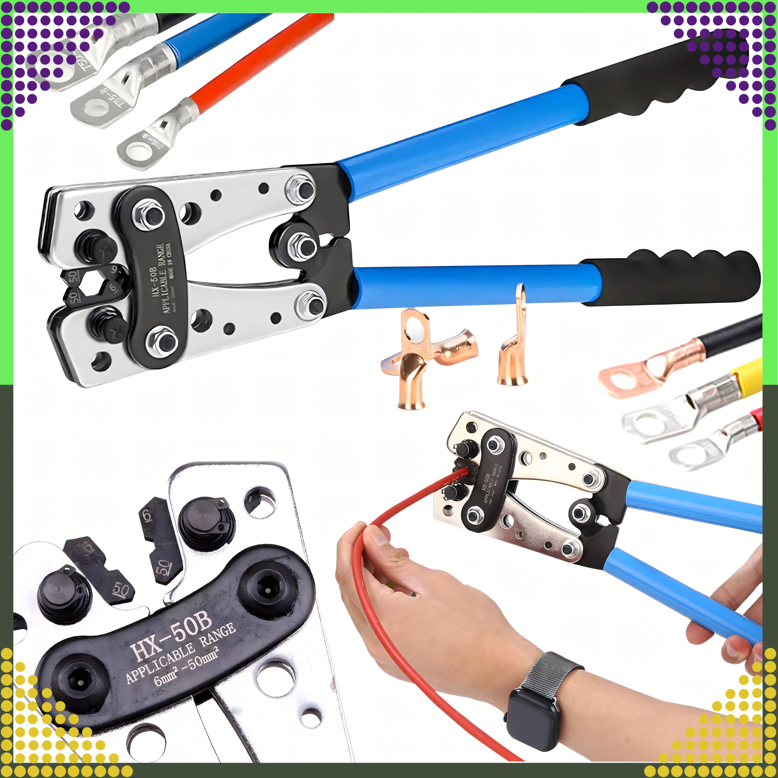 ⚙️️ ZACISKARKA DO TULEJEK KOŃCÓWEK KABLI KONEKTORÓW PRZEWODÓW PRASKA 6-50mm AWG⚙️️
